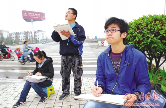 21日,山东农业大学水利土木工程学院的学生,东岳大街附近描绘泰城的现代建筑,学习泰城市政建设中的完美设计,记录下城市的模样。