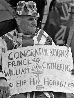 在粉丝人群中,最引人注目的可能是来自剑桥74岁的特里·哈特,他头戴印着英国国旗的帽子、挥舞着国旗。“我的朋友和家人都称我是‘联合旗人’(英国国旗又称为‘联合旗’),哈哈,我从4岁开始就是王室的忠实粉丝了。”哈特骄傲地说。