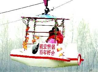一对恋人在空中欣赏梨