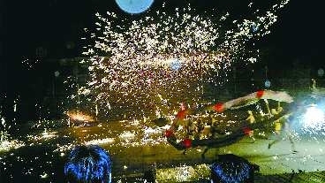 4月28日晚,大型原生态歌舞“西域情”在南部山区的九顶塔中华民族欢乐园景区内首演。数百名游客观看了激情炫目的压轴戏“火龙钢花”表演。“火龙钢花”是来自重庆铜梁县的一项国家级非物质文化遗产项目,表演时钢花四溅,可笼罩半个足球场,撼人心魄。