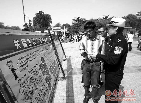 5月1日,济南历下交警大队在泉城广场对﹃醉驾入刑﹄等法律法规进行宣传。本报记者  杜洪雷  通讯员  李晓斌  摄影报道   