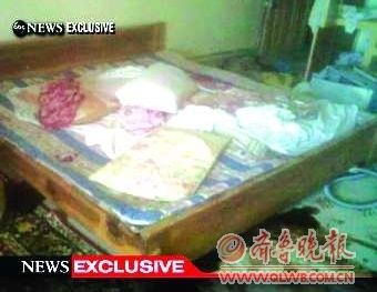 这张5月2日美国广播公司(ABC)的视频截图,显示拉丹藏身之处的卧室。 新华/路透