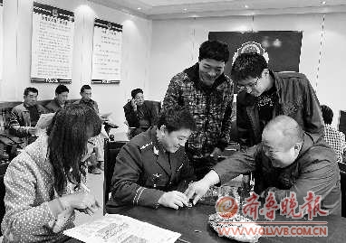 “五一”期间,荣成市边防大队邀请农民工来“农民工服务驿站”,民警和农民一起下象棋、打扑克等共度“五一”。目前,荣成边防大队在辖区已经建立了13个农民工服务驿站,服务辖区5万多名农民工。 本报记者 冯琳 通讯员 卢旺龙 摄