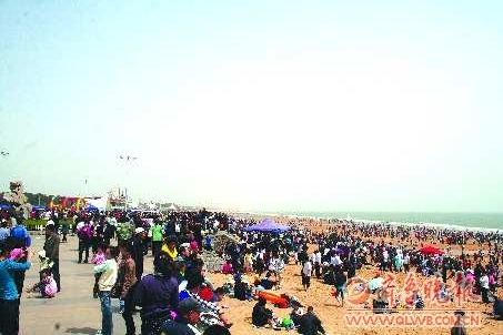 “五一”假期,万平口风景区、山海天度假区等海边景区游客云集,其中5月1日游客数量达到顶峰。图为5月1日,万平口风景区沙滩上游人如织。