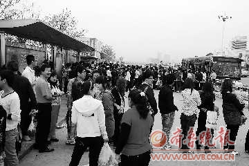 5月2日,在万平口风景区公交站点,结束游玩的游客排起了长队等待返程公交车。据悉,“五一”期间,不少市民外出游玩,享受畅游乐趣的同时也感受了出行难。