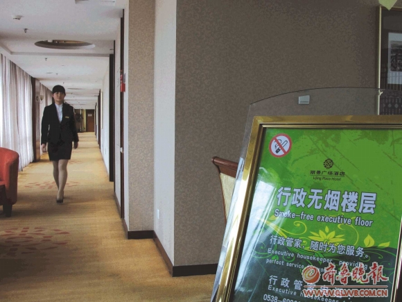 “经常看新闻得知从5月1日起,室内公共场所也要禁烟了,为了响应这一号召,我们正在做警示牌放在大厅,提示顾客尽量不要在室内公共场所吸烟。”丽景广场酒店餐饮部经理赵磊说,酒店从开业起,就尽量在控烟这方面做好工作了,比如餐厅所有的餐桌上都摆放了“请勿吸烟”的提示牌。另外,酒店还把八楼客房部做成了“无烟楼层”,楼层的服务员会不时地提醒顾客禁止吸烟,效果还是比较明显的。