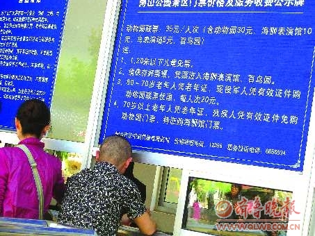 3日,记者在南山公园景区门票价格及服务收费公示牌上看到,原来标注的动物园门票价格已经由15元变成了30元,联票价格由20元变成了35元。问及门票价格为何而涨,售票处工作人员说,增加了两只大熊猫。