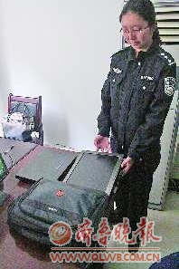 老赵说:“电脑包是朋友送的,市面上很少见。尤其是商标和拉链的颜色很特别。”