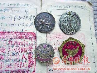 在—堆奖章中,记者还注意到—枚1955年颁发的解放奖章。“奖章上写的是1955年,不过证书上写的是1956年,这些其实没关系,这枚奖章也算是对解放战争的—个纪念吧。”拿着已经有些发亮的奖章,郭先生说“这几枚纪念章虽然只代表了几次战役,但反映的也是—段历史,不仅是父亲自己的解放战争经历,也是—支部队的战争历程。”