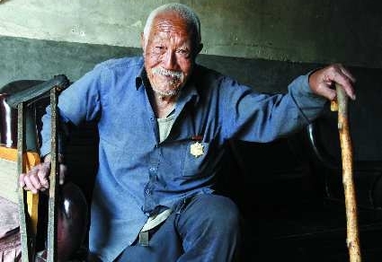 在费县薛庄镇马头崖鲁峪村,有一位82岁的老英雄苏立胜。在淮海战役中,他腿部中弹后仍然坚持战斗,因而留下了终身残疾。
