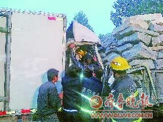 3日凌晨,嘉祥县梁宝寺镇338省道上发生一起车祸,一辆厢式货车追尾撞上一辆满载石块的拖拉机,货车上一名女子被困车内。嘉祥消防经过50分钟的抢救,成功将被困女子救出。 本报记者 陈鸿儒 通讯员 杨勇 摄影报道