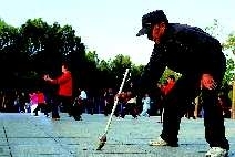 一日之计在于晨,早上,老人们在广场上打太极拳、写毛笔字,锻炼身体,自娱自乐。