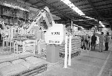 在生产车间,记者看到,两个像手臂一样的机器正在重复地做着一抱一运的动作,它们主要负责饲料的倒运和码放工作。这样不仅减少了工人们的劳动量,降低了生产成本,还提高了生产效率和机械化水平。”该公司品管部的一位负责人说。