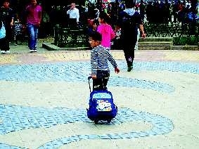 作品描述:这孩子肯定很爱学习,戴着小眼镜不说,书包也改成拉杆箱了。