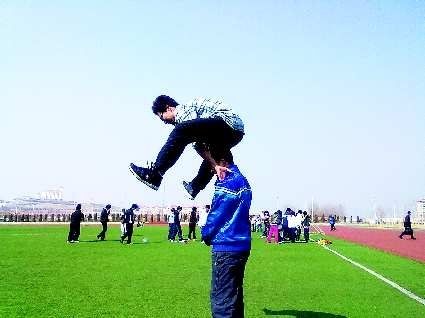 作品描述:操场上,这位同学的动作大有乔丹附体、鱼跃龙门之势啊!