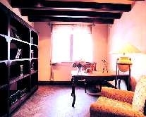 大幅运用木色,实木的厚重感为书房增添历史气息。布艺沙发饰以繁复花纹,提供了舒适的休息区。