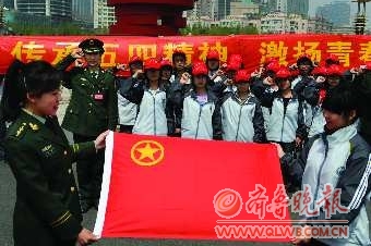 5月3日,青岛科技大学青年学生在“传承五四精神 激扬青春风采”横幅上签名。当日,青岛科技大学团员青年与共建单位青岛公安边防支队中韩边防派出所联合在五四广场举行“传承五四精神 激扬青春风采”活动,通过重温入团誓词、弘扬五四精神签名、团旗跟党走宣讲等内容纪念五四运动92周年。