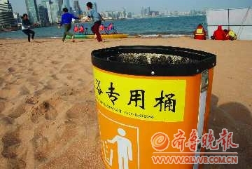 3日,新设的浴场专用垃圾桶在第三海水浴场上岗。据了解,随着青岛旅游旺季的到来,浴场现有的垃圾桶无法容纳大量垃圾,浴场管理部门新增加了四个专用垃圾桶,以后会根据游客人流量增加垃圾桶的数量。