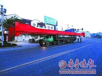 据介绍,3日6时许,平原交警大队执勤民警在省道101线县城西外环巡逻时发现,一辆泰安牌照的重型半挂车拉载着一个超长的货物从德州方向驶来。随即,民警对该车辆进行拦停,经询问司机任某后得知,该超长“巨无霸”是长达40米的吊车吊臂,而运载它的重型半挂车才17米长,超长了一倍多。任某本想走京福高速公路回济南,因为吊臂太长,高速公路不让上,他只好沿101省道回济。