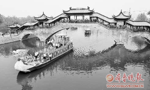 4月30日,“乾隆巡游台儿庄”实景演出剧目在京杭运河台儿庄古运河首次上演。据了解,自今年“五一”起,台儿庄古城将再现当年乾隆皇帝乘龙舟巡游台儿庄时的历史境况,让游客身临其境感受台儿庄古城当年“一河渔火,十里歌声,夜不罢市”的胜景。