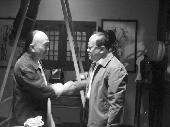 据悉,《杨乃武与小白菜》剧组4月25日在东阿阿胶文化主题酒店举行了开机仪式。接下来,剧组将在东阿、阳谷、东昌府区等地采景,明年上半年即可与观众见面。右图为:阳谷县委常委、宣传部长李其超(右)看望剧组演员。