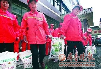 随后,华任面业的相关负责人刘任将30袋10公斤装的面粉一袋一袋发放到环卫工人手中。刘任告诉记者,看到报道后,为这样平凡而伟大的母爱而感动,“也没什么好送的,就给她们每人送袋咱自己厂子里产的面粉吧。”接过沉甸甸的面粉后,环卫工人赵传美脸上露出了笑容,“这袋面粉蒸馒头的话,够家里吃一阵的了。”