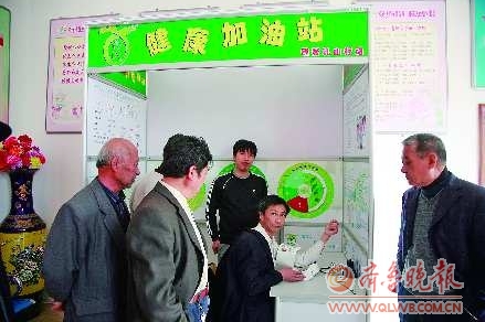 5月4日,乳山向阳社区居民在“健康加油站”里量血压、查血糖、测血脂。今年以来,乳山医疗卫生部门在城市社区设立了11座“健康加油站”,配备了身高测量器、电子血压计和脂肪测量仪等医疗设备。
