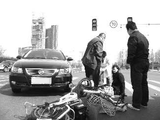 在现场记者看到,电动车主李女士坐在地上,左手捂着腰,表情十分痛苦。轿车司机白静波拨打急救电话几分钟后,光华医院的救护车赶到事发地点,将李女士送到医院。经检查,李女士脊柱轻微骨折,需要住院治疗。