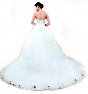 新娘是婚礼的焦点,婚纱则是婚礼献给新娘最美的礼物,长拖尾婚纱让美丽的新娘更为灵动。许多典雅的长拖尾穿在模特儿身上非常娇巧,但新娘穿上身后却显得累赘,或许是这种款式婚纱与新娘的体形和气质不相配。婚纱的拖尾一般可以分为小拖(约60~80厘米)、中拖(约120~150厘米)、以及长拖(约200~250厘米),当然也有更长的,而且多数要订做。不同长度的拖尾婚纱适合不同的婚庆场合,但更重要的是配合不同身材的新娘。要点一:必选开阔场地