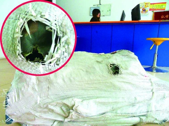宋先生说他经常在网上购物,4月25日,他从一家网店选购了650元的户外用品。付款时默认快递为中国邮政速递物流公司(EMS),邮费48元。3日下午4时许,快递员将包裹送到宋先生妻子工作的医院。宋先生的妻子看到外包装有破损,要求验货,快递员称签字后才能验货,出现问题联系商家。由于医院楼下不能停车,加之其妻子工作也忙,就签了字。当天晚上,宋先生看到包裹外面的蛇皮袋子破了很多洞,里面的帆布也磨破了。宋先生说:“包裹是在运输过程中损坏的,没敢打开,如果里面的东西损坏说不清是谁的责任。”第二天,他去邮政EMS营业网点协商。工作人员却称,收件人签了字,等于默认货物的运输环节没有问题,他们无需承担责任。