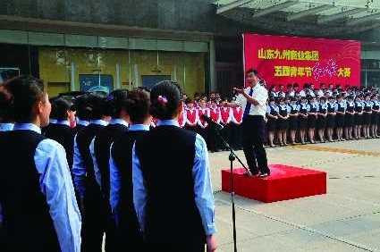 山东九州商业集团600名团员职工在九州商业大厦广场举行“五四”青年节红歌大赛,他们用嘹亮的歌声唱响红色经典歌曲,表达了对党和国家的热爱之情,通过重温经久不衰的革命红歌,进一步增强了团队意识和集体荣誉感。 记者 罗志强 摄影