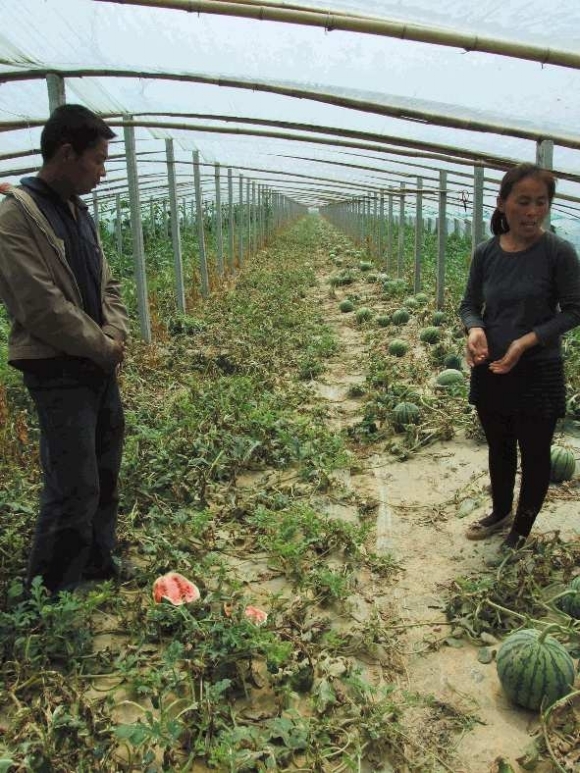 看着辛勤劳作几个月的瓜地变得一片狼藉,夫妻俩绝望地直摇头。自从4月25日知道瓜地出了事故到现在,十多天来,他们茶饭不思,看着同村村民每天高兴地收瓜、卖瓜,他们心里有说不出的难受。
