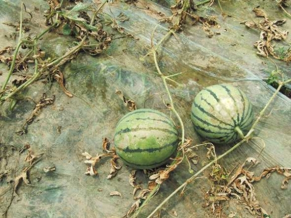 眼下正是西瓜上市的季节,可自4月25日以来,聊城市东昌府区许营镇张货郎村的张立军却一直愁眉不展。原来,他家大棚里种的三亩西瓜一夜之间被人喷洒了一种叫“百草枯”的除草剂,瓜秧瓜叶枯黄死亡,西瓜表皮呈现大块白斑,损失3万多元。