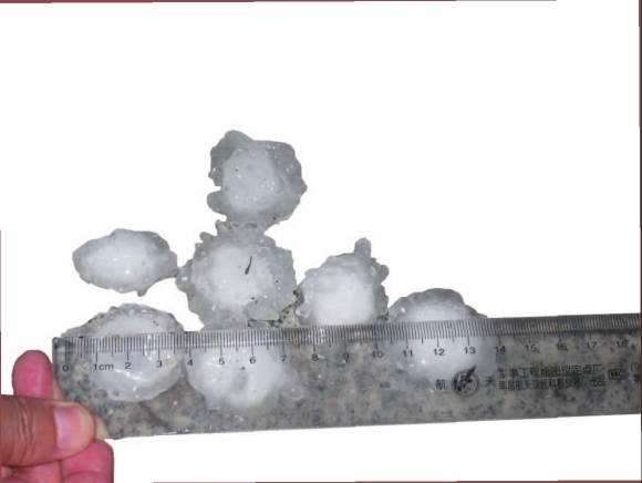 任先生说,当时他正准备休息,突然听到屋外响起“咚咚”声,“我家住在顶楼,声音非常清楚,猜测可能是下冰雹了。”大约20分钟后,任先生下楼发现地面上仍有没融化的大粒冰雹,最大的比鹌鹑蛋还要大。“我还真是没见过这么大的冰雹。”任先生说。