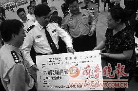 本报5月8日热线消息 (本报见习记者 韩伟杰 实习生 张梦西) 4月8日上午,济宁市公安局在全民健身广场上举行了防控成果展示暨安民行动集中宣传和赃款赃物返还活动,向市民展示过去一年严打防控的成果,并将收缴的赃款脏物返还受害人。