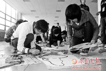 7日上午,以“放飞梦想,为心灵插上翅膀”为主题的风筝设计大赛在山东大学威海分校海洋学院大厅举行。大学生们动手制作风筝,放飞风筝,丰富了大学生活,也感受到别样的乐趣。图为大学生们在制作风筝。 本报记者 侯书楠 摄