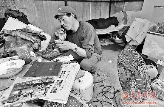 “每件配件我在原料费的基础上加收一两块钱用来维持我的生活,每月能赚八九百块钱吧,我每月花六七百,还能净赚两三百。”庞玉现说,他每个月的开销中,香烟要占去一半,这是他唯一的“奢侈”消费。