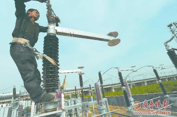 5月6日下午,记者来到了位于济南市槐荫区西部的济南牵引站。站内露天场地里,竖立着支柱、隔离开关等电气设备。墙外的线杆上,则能清楚地看到远道而来的“客人”———来自长清区许寺变电站的220千伏许高线和来自槐荫区清河变电站的220千伏清高线。