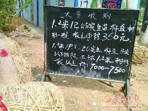 看到记者有买树的诚意,在答应给他至少5000元的介绍费后,杜老板随后开着自己的车拉着记者去附近几个村子里找树。沿着沂河河堤走,见到一处村落就下去打听。“现在很多大树政府都敲上牌了,不让卖了。没牌的不好找了。”杜老板告诉记者。