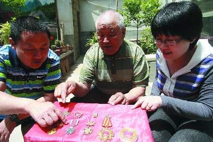 ▲全老跟他的子女说,每一枚军功章都有着一个战斗故事。