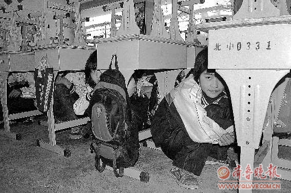 5月12日是全国防震减灾日,菏泽市牡丹区北城中学2000余名师生参加了地震避险疏散演练。随着总指挥长一声长哨,学生起立,将坐凳放于课桌上,然后弯腰低头、闭嘴、躲在课桌下。主震过后,随着三声短哨,应急疏散开始,学生在老师的组织下有序地迅速离开教学楼,安全撤到操场,整个过程在2分钟之内完成。 本报见习记者 邓兴宇 李凤仪 摄影报道