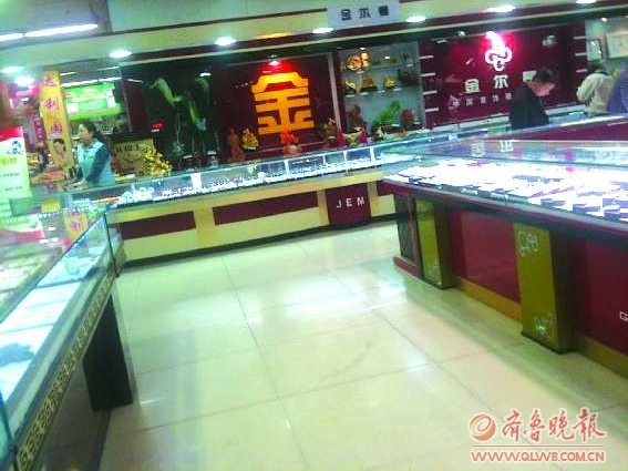 晚上8时左右,记者来到宁阳县万达百货商场一楼金尔曼金饰品专柜,看到工作人员正在向顾客介绍饰品情况,但商场中还有很多人议论着下午发生的持“枪”抢劫的事情。
