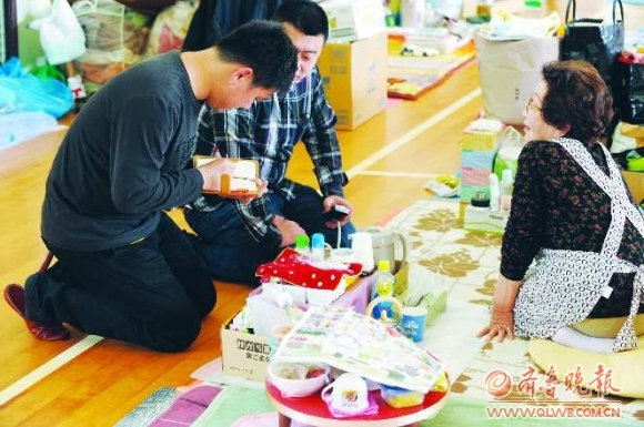日本强震海啸已过去两个多月,但对于日本社会而言,震动不止,余波未平。近日,本报两名特派记者前往日本灾区探访日本灾区的重建复兴之路。图为本报特派记者李康宁(左一)13日在仙台一个避难所采访日本灾民。