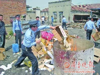 现场宣传活动结束后,济南警方开展了集中销毁活动。在唐王纸厂,查获的假药和假发票占据了大半个广场的面积。这些物品包括“亮剑”专项行动中警方会同药监部门所查获的760箱、1600余种假药,打击发票犯罪“深入”行动中所缴获的各类假发票320余万份。