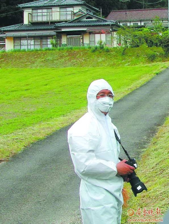 5月15日,本报特派记者周青先在日本福岛20公里警戒区域江浪町边缘采访。