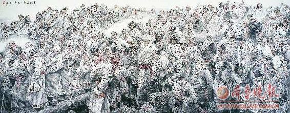 可以说,苗再新的作品在极力张扬写实精神与笔墨表现的同时,更多的是对民族传统与文化精神的回响,从《师生》到《热血男儿》、从《天使在人间》到《儿女英雄》这大视角、大英雄主义的激昂描述,其笔下的悲壮情怀远远超出了作品本身带给我们对诗性品质的关注,也毫无疑问地具有一种无畏的悲壮史诗般的英雄气概和时空的沧桑感,包孕着恢弘的内涵,它带给人的是一种精神上的感动!“艺术以真善美为依归”,读苗再新的作品使我坚信这一观念。
