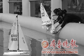 15日,在奥帆博物馆旁,参加遥控帆船培训的小队员正在训练。今年8月8日青岛将举办首届遥控帆船比赛,现在已经有不少青少年参与到这项运动中来。遥控帆船和实际帆船的原理是一样的,通过这项运动可以让更多的市民参与到帆船运动中来。