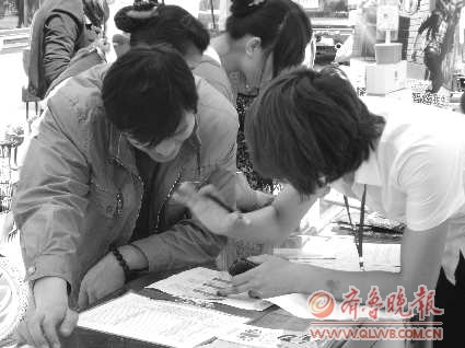 为庆祝5.17世界电信日,枣庄电信于5月14日至15日在市中、滕州、薛城、峄城、台儿庄、山亭各营业厅门前举办光网城市、天翼3G手机智能手机及热门应用体验活动。图为电信工作人员在给市民介绍业务。