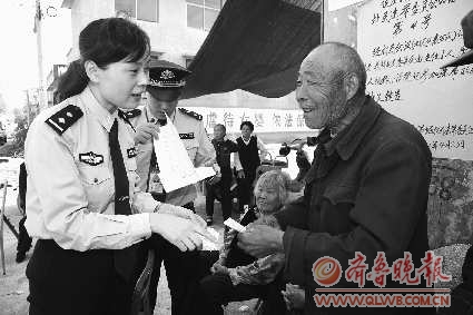 5月14日,在“大走访”开门评警活动中,滕州市公安局户籍民警来到滕州市龙阳镇侯庄村为28位户口存在漏登现象的老年人,现场登记补户并采集人像信息,同时将新办好的户口本送到每一位老人手中。此事解决了28位老人因户口漏登而造成养老保险和新农合无法办理的问题,解除了他们的后顾之忧。 见习记者 徐萌 摄