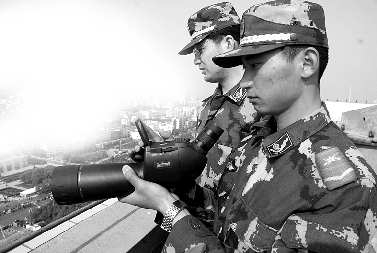 为提高广大执勤官兵处置各类突发情况的能力,支队专门制定了包括不法分子寻衅滋事、群体性冲撞、劫持公交车、投放爆炸物等20余种突发情况的处置预案,合理编成兵力,周密研究战法,并集中部队加大了实战化训练力度,特别是对可能发生的不法分 武警战士在制高点进行全程侦查。 本报通讯员提供